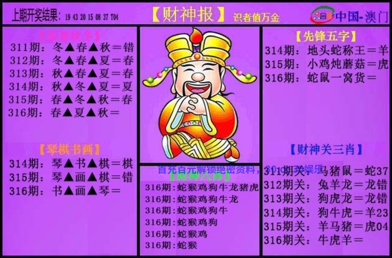 311期:绝杀两尾【杀1.3尾】开:蛇37准
