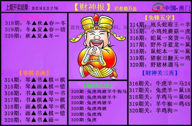 • 琴:兔蛇鸡 棋:鼠牛狗 书:虎龙马 画:羊猴猪